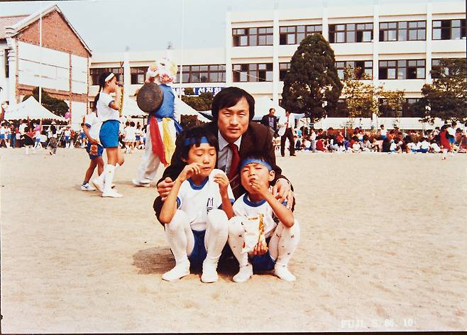| ▲ 두 아들의 운동회를 보기 위해, 양복 차림으로 회사에서 학교로 달려온 아버지 |