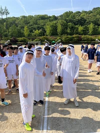 | ▲ 가톨릭 학교에 나타난 아랍 전통 복장. '부담스럽지 않으냐'는 질문에 아이들은 '꼰대스럽다'고 답했다. |