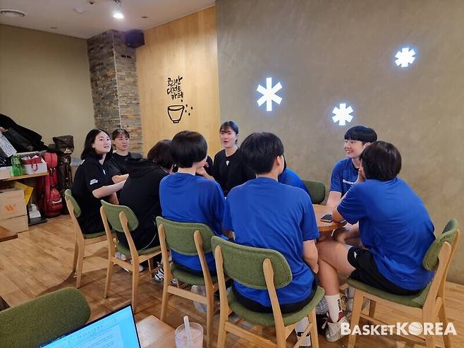 대구 효성여고 주장인 김정은은 “드리블과 패스 등 기초 훈련을 많이 했다. 그렇지만 새롭게 접한 운동이 많았다. 공 2개를 드리블한 후 레이업을 해보는 운동이 그랬다”며 새롭게 접했던 훈련을 이야기했다.