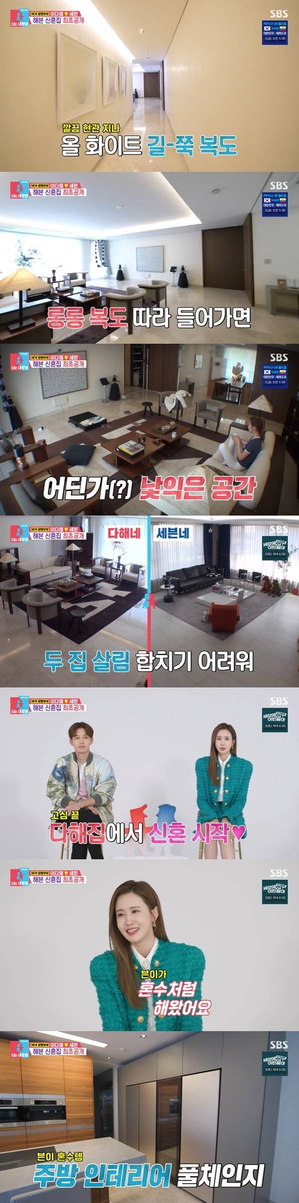 이날 방송에서는 이다해 세븐 부부의 결혼식에 이어 결혼 2일차 신혼집이 공개됐다. 올 화이트 길쭉한 복도를 따라 들어가면 나오는 거실은 어딘지 모르게 익숙한 느낌. 알고 보니 두 사람의 신혼집은 지난 방송에서 이미 공개된 이다해의 집이었다.