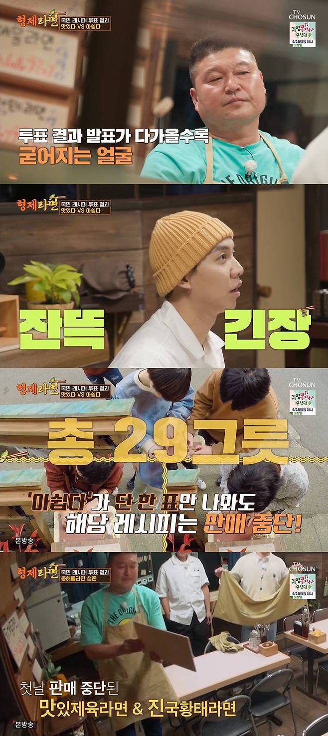 29일 방송된 TV조선 '형제라면'에서는 라면 가게의 영업 첫째 날 모습이 그려졌다.