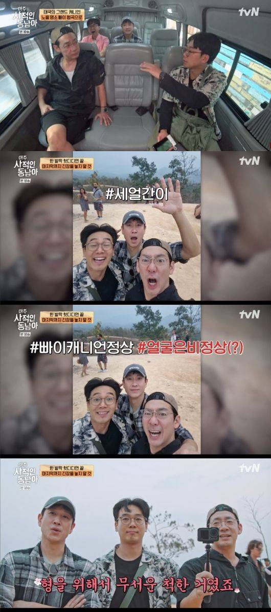 지난 29일 방송된 tvN '아주 사적인 동남아' 최종화(10화)에서는 이선균, 장항준, 김도현, 김남희가 여행의 마지막 일정으로 '아시아의 그랜드 캐니언'이라고 불리는 '빠이 캐니언'을 찾은 모습이 그려졌다.