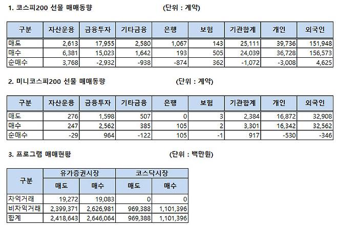 [표]주가지수선물 투자자별 매매동향(5/30)