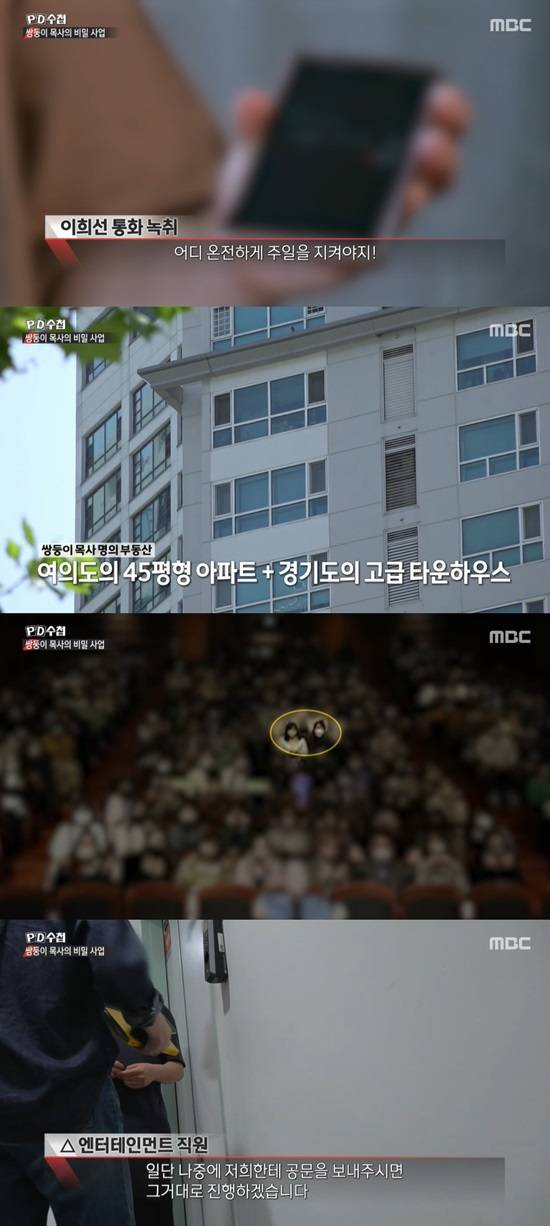 이곳의 지난해 헌금 수입은 약 187억원으로, 쌍둥이 목사의 재산도 추적했다. 밝혀진 이들 명의 부동산으로는 여의도의 45평 아파트, 파주의 고급 타운하우스가 있다고. 이들이 현재 보증금 5억 월세 1천6백만원인 용산의 한 신축아파트 펜트하우스에서 살고 있다고도 했다.