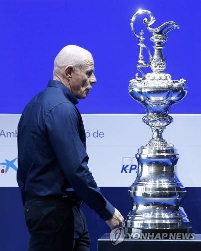 epa10663238 Emirates Team New Zealand's managing director Grant Dalton passes the America's Cup sailing trophy during the second day of the Cercle d'Economia Meeting 2023 at the Cercle d'Economia headquarters in Barcelona, Spain, 30 May 2023. Cercle d?Economia is a civic association that seeks to improve the quality of public debate on matters such as Economics, Social issues and political progress. EPA/Andreu Dalmau