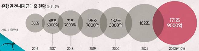 부동산 업계에서는 “2016년부터 전세자금대출이 활성화돼 ‘전세의 판도’가 바뀌었다”는 얘기가 나온다. 정부는 2015년 전세자금대출 한도를 5억원까지 증액했는데, 전세 수요가 커지고 전셋값이 오르면서 갭투자가 속출했다는 것이다. 실제로 한국은행에 따르면 은행권 전세대출 잔액은 2016년 36조원에서 2017년 48조6000억원으로 오르고 지난해 10월 기준 171조9000억원까지 폭증했다.