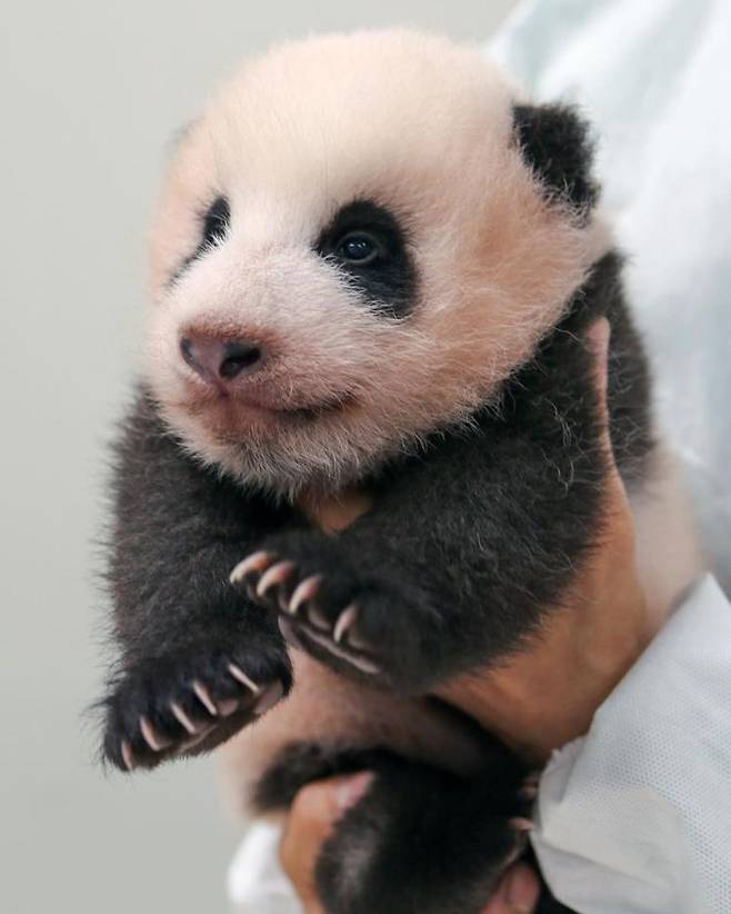 생후 50일 된 아기 판다 푸바오의 모습이다. 꼬순내 폴폴~ 날 듯한 푸바오의 발바닥은 심쿵 치명타 그 자체이다.
