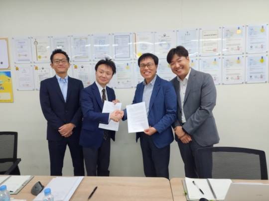 <사진=왼쪽부터 CCS사 후지타 해외영업 집행임원, 사카모토 이사, 아이코어의 박철우 대표, 주현철 이사>