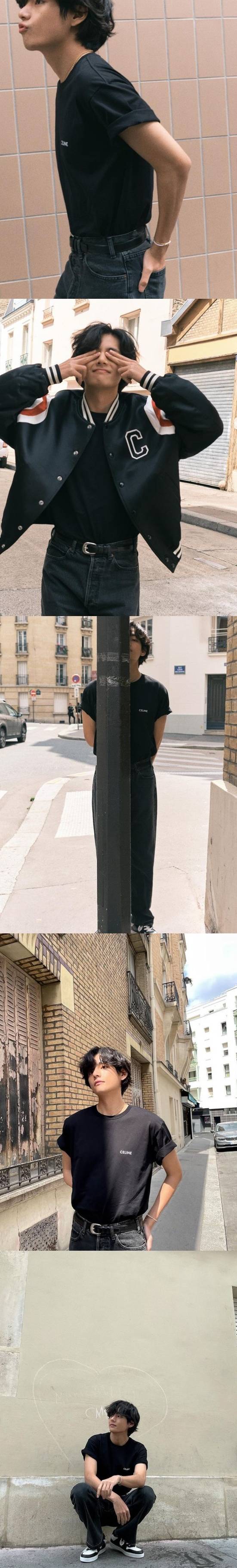 공개된 사진에는 뷔가 검은색 티에 청바지를 매치한 패션으로 거리를 자유롭게 활보하는 모습이 담겼다.