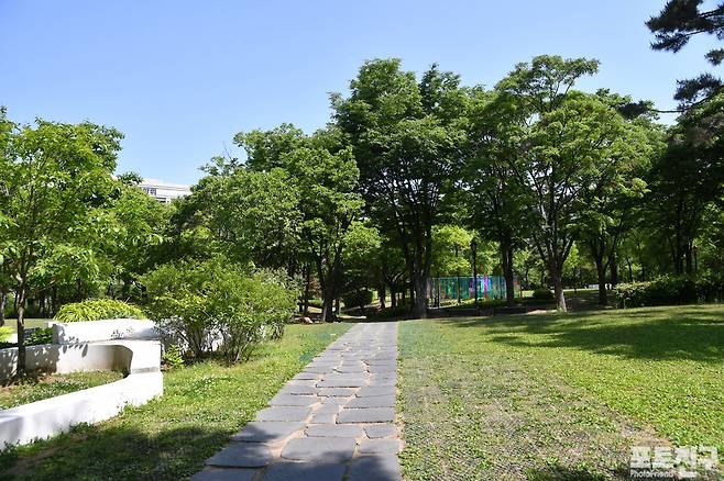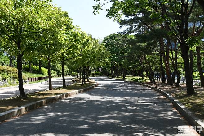 신록의 계절 나무들이 울창하게 자란 여의도 공원 풍경입니다.