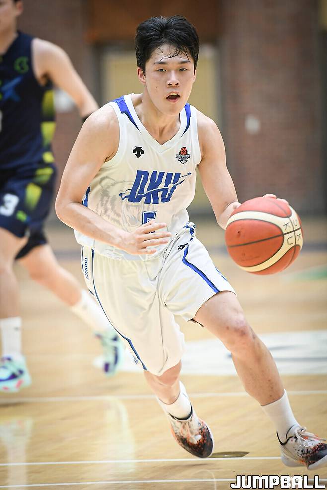 31일 성균관대학교 자연과학캠퍼스 수성관에서 열린 2023 KUSF 대학농구 U-리그 성균관대와 단국대의 경기, 단국대 이경도가 돌파를 시도하고 있다.