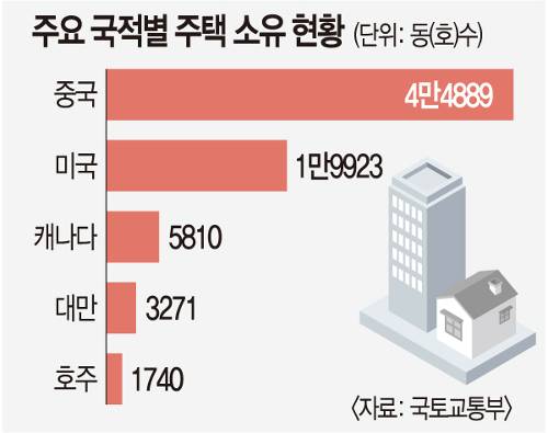 국내 주택 보유 외국인들을 국적별로 보면 중국이 4만4889가구(53.8%)로 가장 많았다.