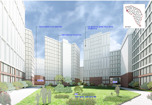 마지막으로, 주민의 생활 편의를 높이기 위해 주요 생활 가로를 따라 다양한 근린생활시설을 배치하는 한편, 주요 보행 동선과 연계해 지역주민을 위한 공동시설을 확보하는 계획을 수립했다.