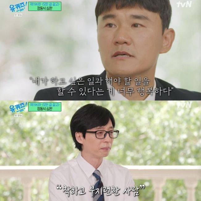 [OSEN=박하영 기자] ‘유 퀴즈 온 더 블럭’ 유재석, 정동식 심판이 아버지의 마음으로 눈물을 흘렸다.