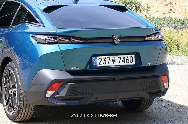 후면부는 테일램프를 포함한 주요 요소를 치켜올려 긴장감이 느껴진다. 클래딩은 두텁게 처리해 범퍼의 역할을 온전히 수행한다. 지붕 끝에는 고양이 귀 모양의 구조물이 있다. 트렁크 도어의 경첩이 위치한 부위로, 실내의 뒷좌석 머리 공간 확보와 공력 성능 개선의 효과를 얻기도 했다. 덕분에 408의 공기저항계수는 0.28Cd에 불과하다.