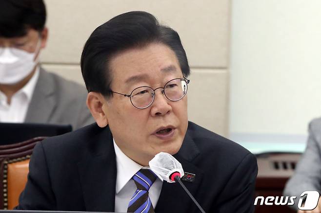 (서울=뉴스1) 황기선 기자 = 이재명 더불어민주당 대표가 1일 오후 서울 여의도 국회에서 열린 국방위원회 전체회의에서 신범철 국방부 차관에게 질의를 하고 있다. 2023.6.1/뉴스1