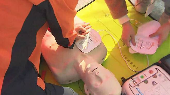 곧이어 현장에 도착한 보건 담당 이순주 교사도 심장제세동기를 이용해 응급조치했습니다.