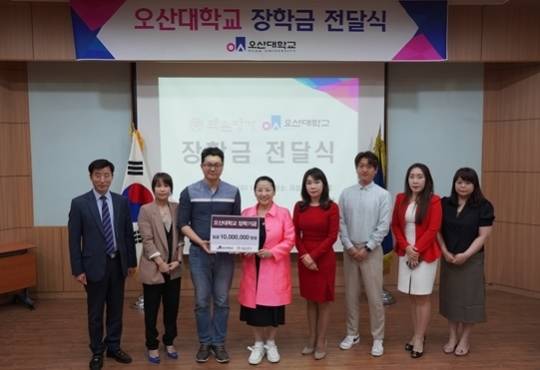 이날 전달식에는 김현숙 약손명가 대표, 김영길 오산대학교 학생취업처 처장, 뷰티코스메틱계열의 교수들과 100여명의 학생들이 참여한 가운데 장학금 전달이 이뤄졌다.