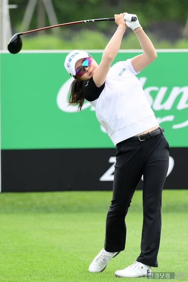 한국여자프로골프(KLPGA)투어 '롯데 오픈' 1라운드 경기가 1일 인천 서구 베어즈베스트 청라에서 열렸다. 대회에 출전한 고지원이 1번 홀에서 티샷하고 있다.