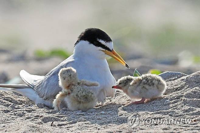 (포항=연합뉴스) 손대성 기자 = 2일 경북 포항 한 해안에서 쇠제비갈매기가 새끼들을 돌보고 있다.