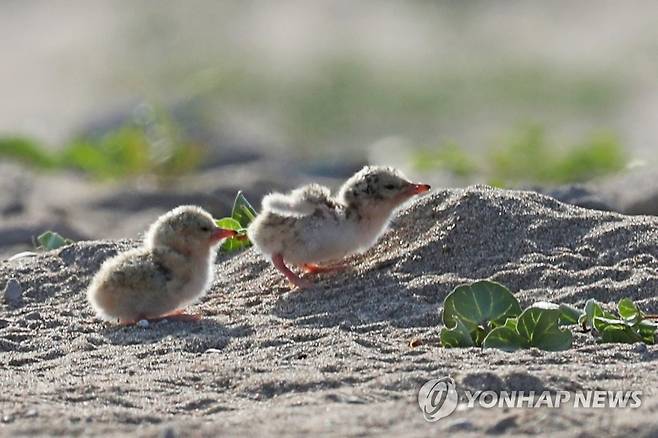 (포항=연합뉴스) 손대성 기자 = 2일 경북 포항 한 해안에서 쇠제비갈매기 새끼가 움직이고 있다.