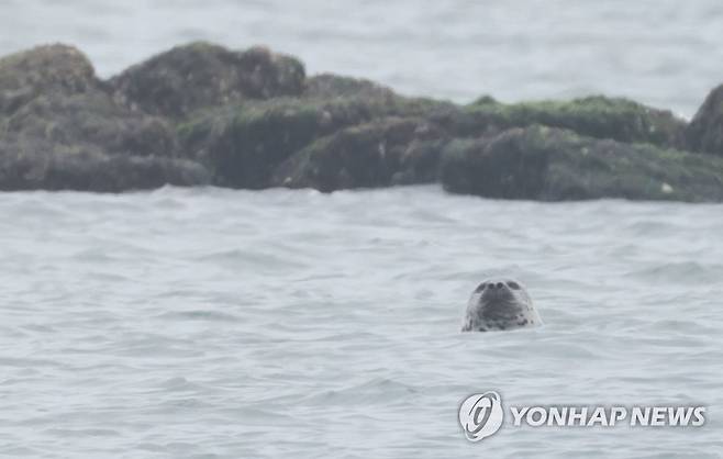 (백령도=연합뉴스) 김인철 기자 = 2일 오전 서해 최북단 인천 옹진군 백령도 앞 NLL 인근 해상에서 천연기념물인 점박이물범이 숨을 쉬기 위해 수면 밖으로 고개를 내밀고 있다. 2023.6.2