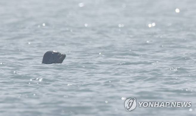 (백령도=연합뉴스) 김인철 기자 = 2일 오전 서해 최북단 인천 옹진군 백령도 앞 NLL 인근 해상에서 천연기념물인 점박이물범이 숨을 쉬기 위해 수면 밖으로 고개를 내밀고 있다. 2023.6.2