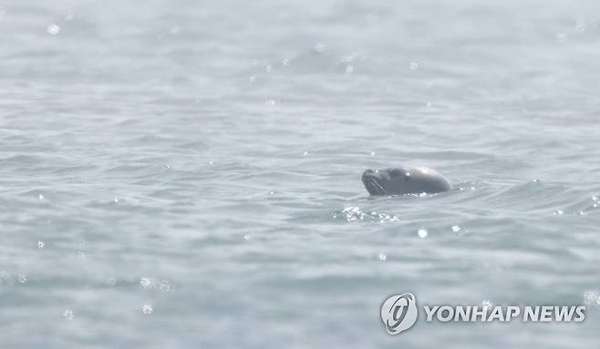 (백령도=연합뉴스) 김인철 기자 = 2일 오전 서해 최북단 인천 옹진군 백령도 앞 NLL 인근 해상에서 천연기념물인 점박이물범이 숨을 쉬기 위해 수면 밖으로 고개를 내밀고 있다. 2023.6.2
