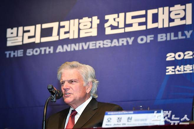 1일 오후 서울 중구 웨스틴조선서울 호텔에서 열린 빌리그래함 전도대회 50주년 기념대회 기자회견에서 프랭클린 그래함 목사가 취재진의 질문에 답변하고 있다. 다수 미국 전직 대통령의 멘토를 맡기도 했던 그의 방한은 국내 기독교 부흥의 시대 열었다는 평가를 받는다. 류영주 기자