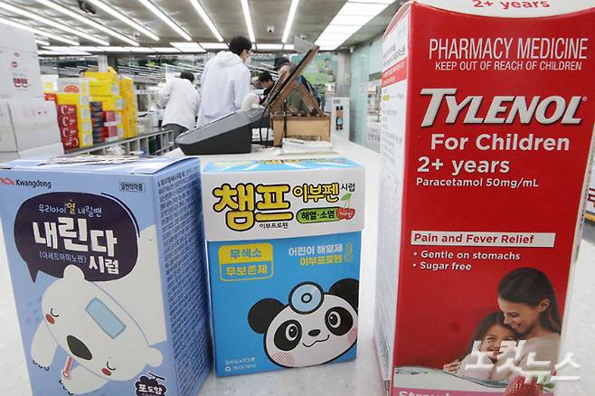 아세트아미노펜 계열의 어린이 해열제들이 판매 중지로 품귀 조짐을 보이고 있는 가운데 29일 서울의 한 약국에 어린이 해열제가 놓여있다. 국내 판매 1·2위 제품인 콜대원키즈펜시럽과 챔프시럽이 모두 최근 한 달 사이 제조와 판매가 중단됐다. 콜대원키즈펜시럽은 맑은 액과 불투명액이 섞이지 않는 '상 분리 현상', 챔프시럽은 흰색 시럽이 갈색으로 변해 문제가 됐다. 류영주 기자