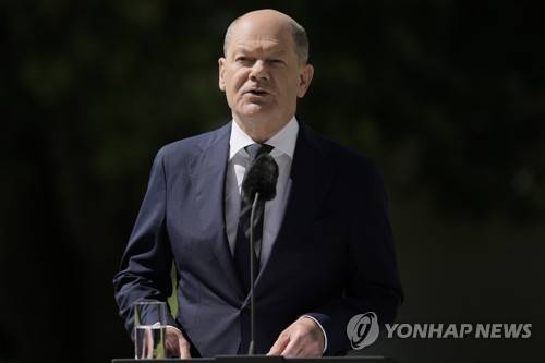 German Chancellor Olaf Scholz briefs the media during a news conference after a meeting of the "Alliance for Transformation" at the chancellery in Berlin, Germany, Friday, June 2, 2023. (AP Photo/Markus Schreiber)