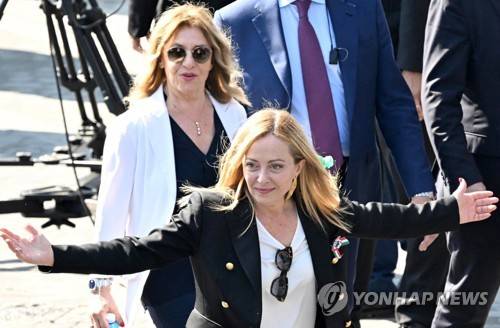 epaselect epa10668225 Italian Prime Minister Giorgia Meloni reacts as she arrives to attend the annual military parade on the occasion of the 77th anniversary of the Republic Day (Festa della Repubblica) in Rome, Italy, 02 June 2023. The anniversary marks the founding of the Italian Republic in 1946. EPA/CLAUDIO PERI