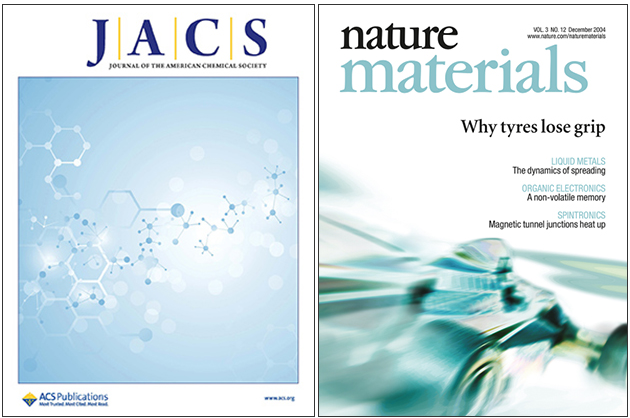 ⓒJACS, ⓒnature materials <현택환 교수의 '승온법'이 게재된 '미국화학회지(2001)'와 나노입자 대량 생산법이 게재된 '네이처 머티리얼스(2004)' 표지>