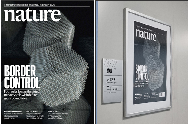 ⓒnature <현택환 교수 서울대 연구실 벽에 붙어있는 2020년 네이처지 표지논문 사진>