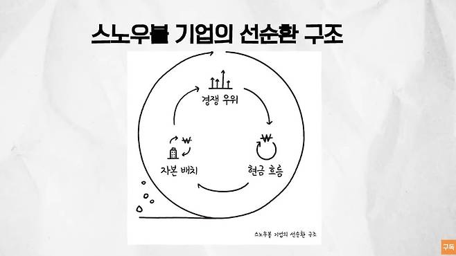 “기업가치가 눈덩이(스노우볼)처럼 불어나는 좋은 기업은 2가지 요소를 갖추고 있습니다. 하나는 경쟁우위를 얼마나 갖췄는지, 다른 하나는 벌어들인 돈을 어떻게 재배치하는지에 달려 있습니다.”