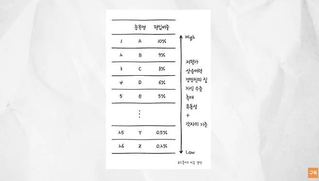 종목 별로 저평가나 상승여력, 투자자의 분석 수준 등 각자 자신만의 기준에 따라 확신이 강한 종목 비중일수록 높은 편입비중을 가져가는 원칙입니다.
