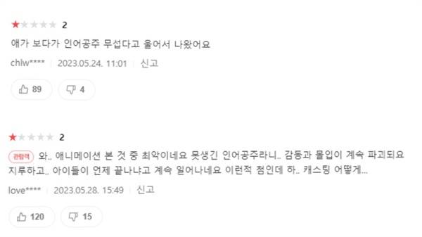 | ▲ <인어공주> 네이버 평가 |