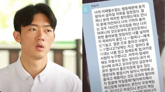 문자 메시지를 통해 이순자 씨는 손자인 우원 씨에게 "너의 이해할 수 없는 행동 때문에 충격을 받아 살아갈 의욕을 잃었다"면서 "할머니를 보러 여러 번 찾아왔는데도 만나지 못해 미안하다"고 말했습니다.