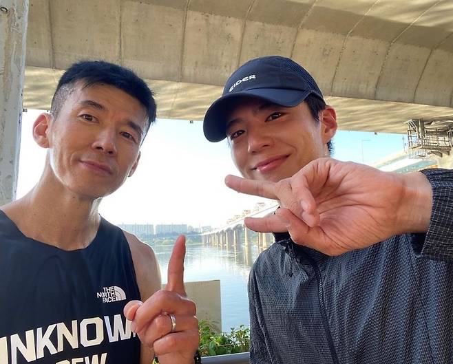 가수 션이 배우 박보검과 새벽 러닝에 나섰다.
