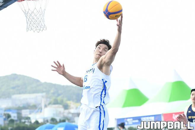 3일 경남 양산시 양산인라인스케이트장에서 열린 KBA 3X3 코리아투어 2023 양산대회 1일차 경기, 리그 남자부 하늘내린인제 노승준이 리바운드를 잡아내고 있다.