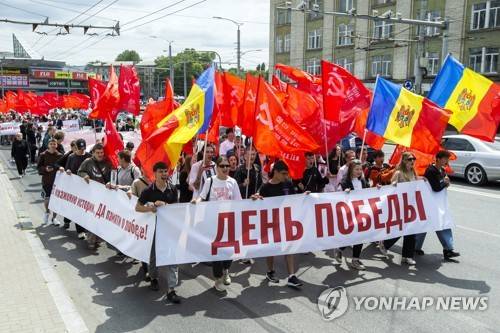 Moldovan opposition supporters protest against rebranding of 9th May Victory Day celebration