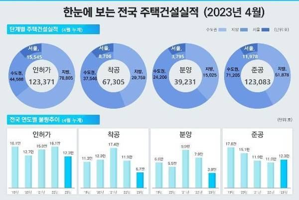 국토교통부에 따르면, 올해 1~4월 주택 인허가는 12만3371호로 지난해 같은 기간(16만842호) 보다 23.3% 줄었습니다. 착공도 6만7305호도 지난해보다 43.2%나 줄었고, 특히 서울은 60% 가까이 줄었습니다.