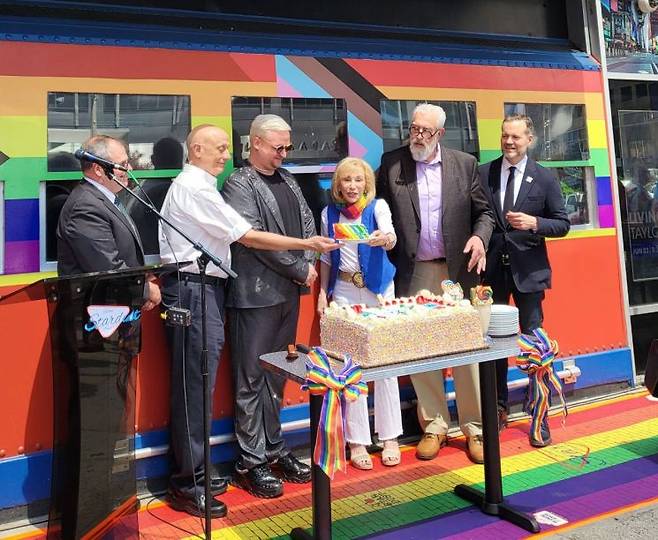지난 1일(현지시간) 오전 11시, 미국 뉴욕 브로드웨이에 위치한 '엘렌스 스타더스트 다이너' 앞에 무지개 색상의 길이 깔리고 커다란 '레인보우 케이크'가 등장했다. 브로드웨이 뮤지컬 배우 및 지망생들이 직접 음식을 서빙하며 노래하는 이색 식당으로 알려진 이곳은 한국에서도 배우 정해인이 한 여행프로그램에서 방문하면서 더 유명세를 얻은, 이른바 '브로드웨이 관광 핫스팟'이다.