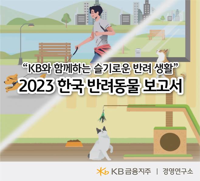 KB금융그룹은 반려동물의 첫 맞이 과정부터 양육, 장례까지 전생애에 걸친 행복한 반려생활을 위한 필수 조건들을 담은 ‘2023 한국 반려동물 보고서’를 내놨다. 보고서에 따르면 반려가구는 2022년말 기준 약 552만가구로 2020년 말에 비해 약 2.8%가 증가했다. 반려가구는 전체 가구의 25.7%를 차지하고 반려인은 1262만명이다.