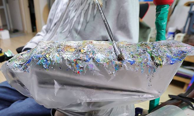 전동식 이젤이 생겨 이제는 큰 사이즈의 그림도 문제없다고 한다.