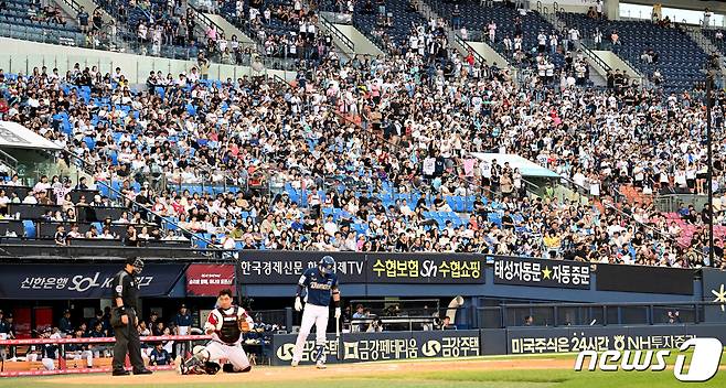 (서울=뉴스1) 장수영 기자 = 코로나19 격리 의무 해제 이후 첫 주말인 4일 서울 송파구 잠실 야구장에서 열린 NC와 LG의 경기를 찾은 관중들이 경기를 관람하고 있다. 2023.6.4/뉴스1