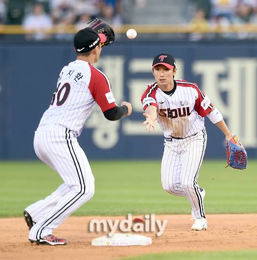 [MD포토] 신민재 '만루 위기 넘기는 병살 수비'