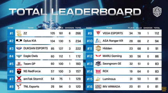 투 제트는 이날 마지막 두 매치에서 연달아 치킨을 차지하며 역전승에 성공했다. 경기력도 참가팀 중 으뜸이었다. 킬 부문에서 161점을 쌓으며 2위 DK에 비해 무려 31점을 앞섰다.