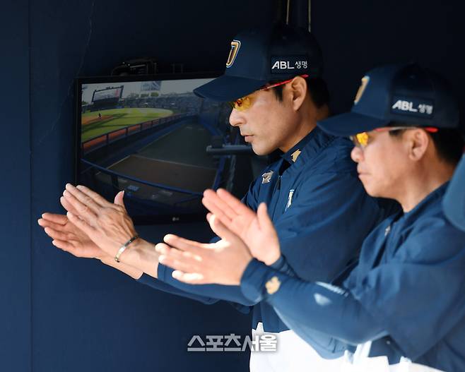 NC 다이노스 강인권 감독이 4일 잠실구장에서 열린 2023 KBO리그 LG 트윈스와 경기에서 선수들의 플레이에 박수를 보내고 있다. 2023. 6. 4. 잠실 | 박진업기자 upandup@sportsseoul.com