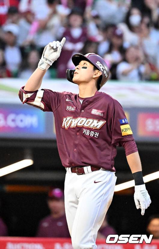 8회초 키움 선두타자 이정후가 우월 동점 솔로홈런을 날린 후 세리머니를 하고 있다. 2023.06.04 /rumi@osen.co.kr